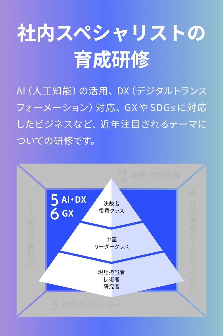 若手~中堅のリスキリング、本格的にAI導入を検討しているリーダークラスまで、幅広い社員層にアプローチできるラインナップをそろえています。